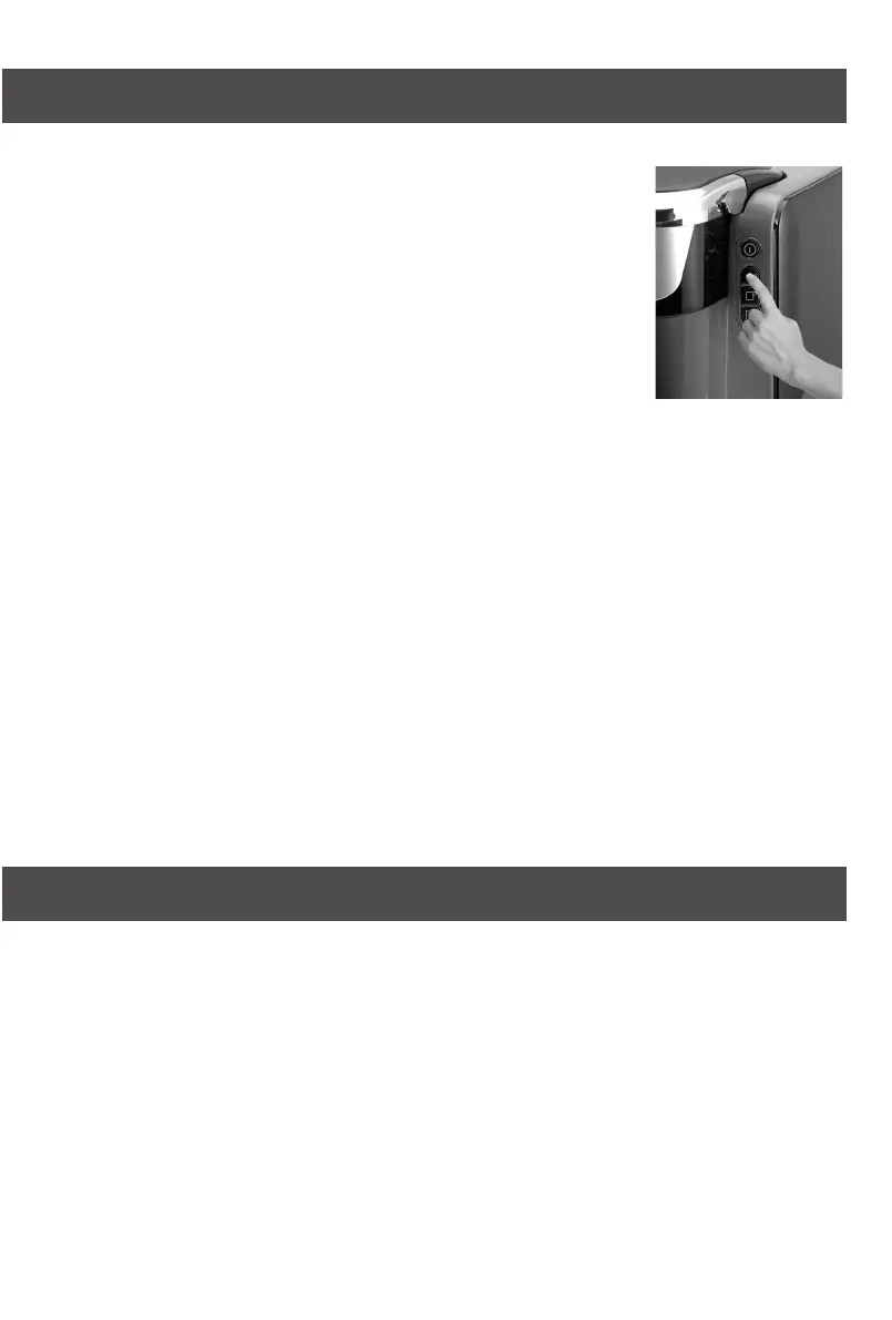 g. Turn on the brewer by pressing on/off button and the new coffee