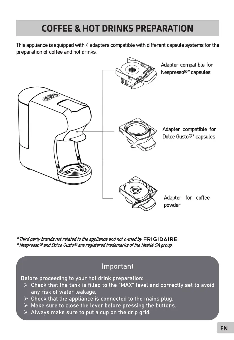 Frigidaire ECMN103-WHITE - COFFEE & HOT DRINKS PREPARATION
