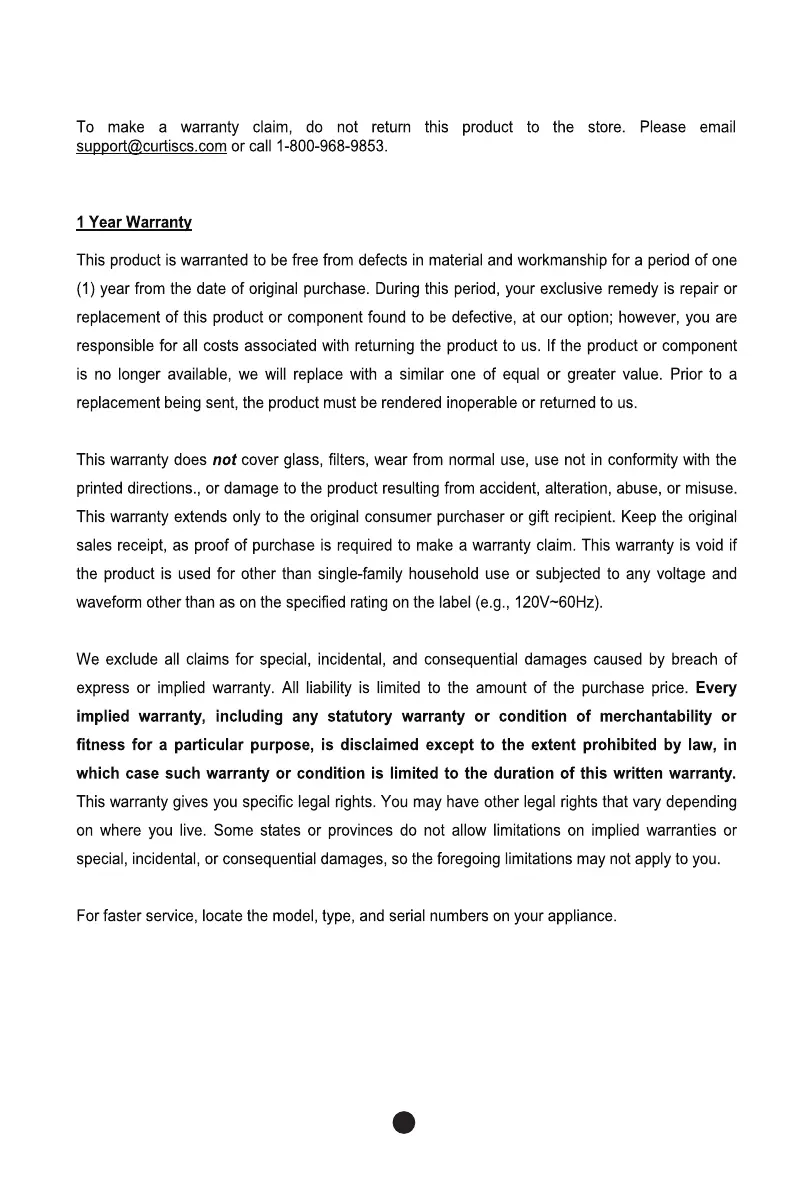 Frigidaire EFIC123-SS - Warranty Information