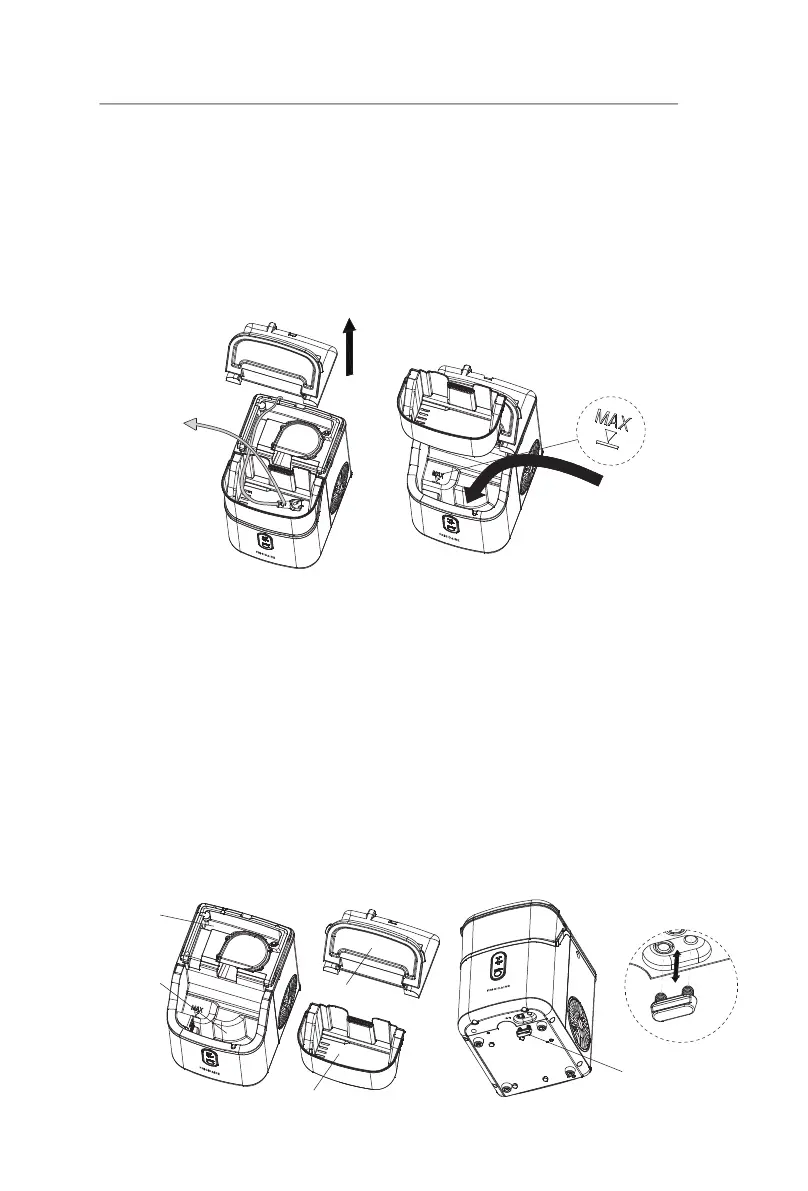 2. Retirez le panier de glace et versez de l'eau potable dans le réservoir jusqu'à