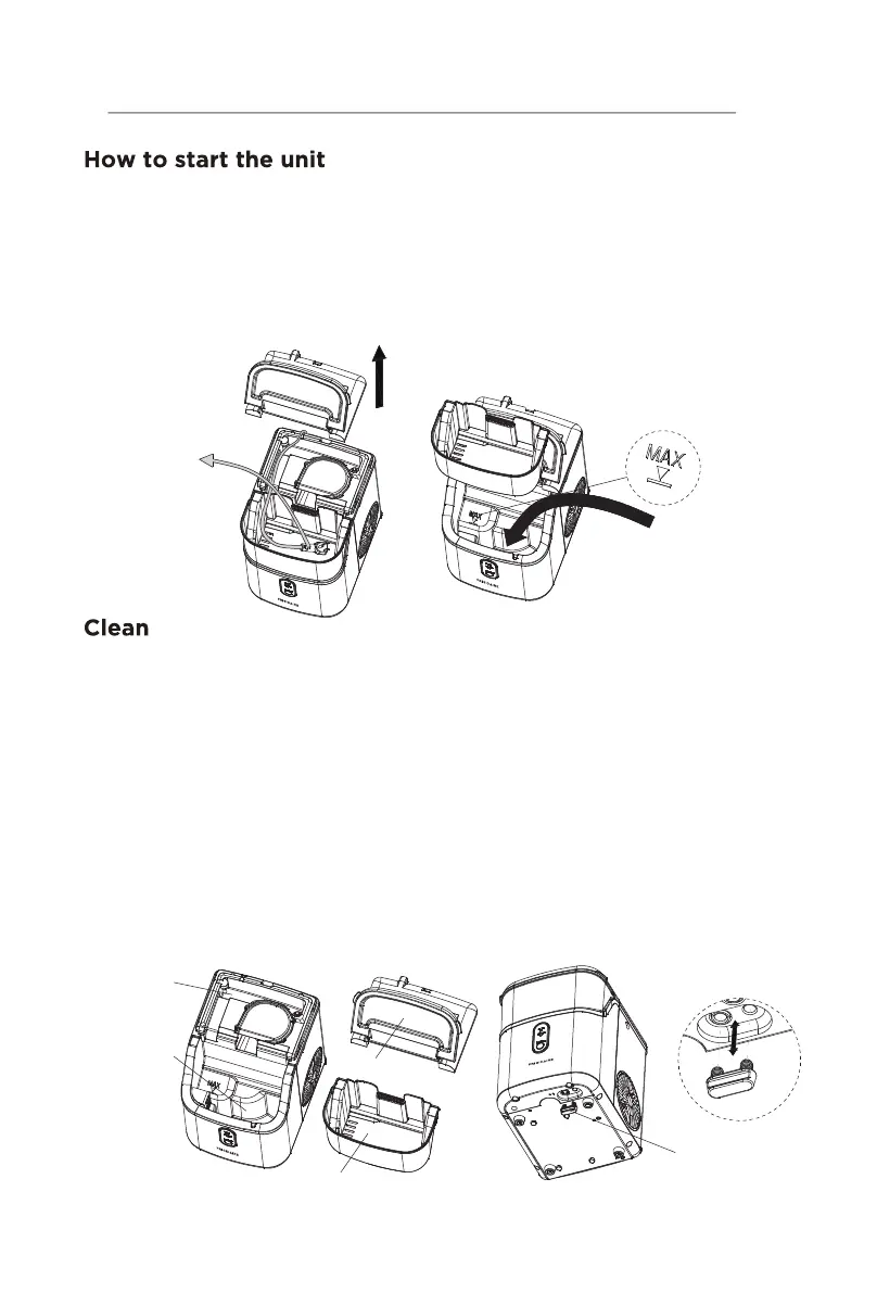 button, the machine will start making ice; If long press the “Ice/Clean” button,