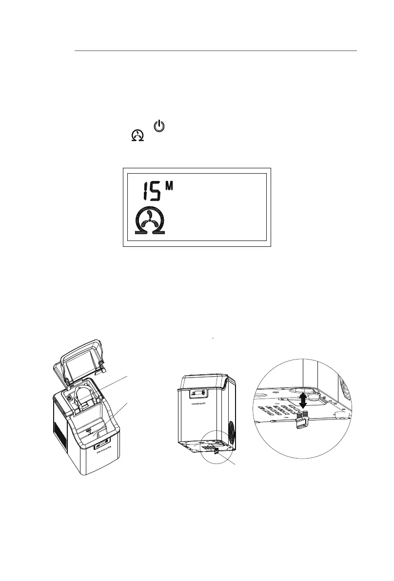 5. Press“ICE/CLEAN” button“ ” for 5 seconds and the screen displays 15M and