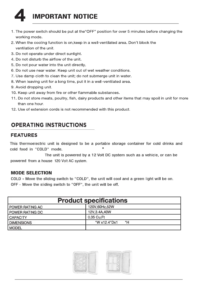 Frigidaire EFMIS188-SS - Important Notice; Operational Precautions; Product Specifications; Operating Instructions