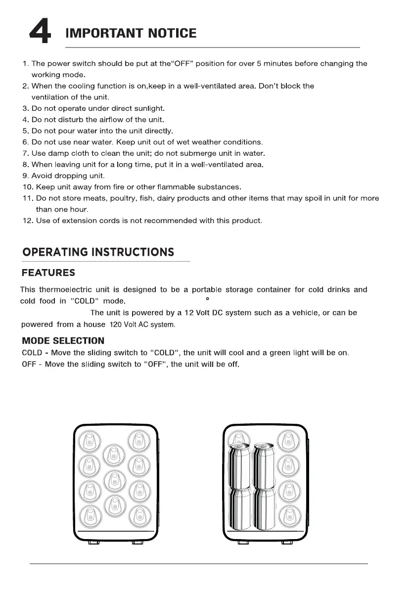 COLD/LIGHTS - Move the sliding switch to "COLD/LIGHTS", the unit will cool and the internal light