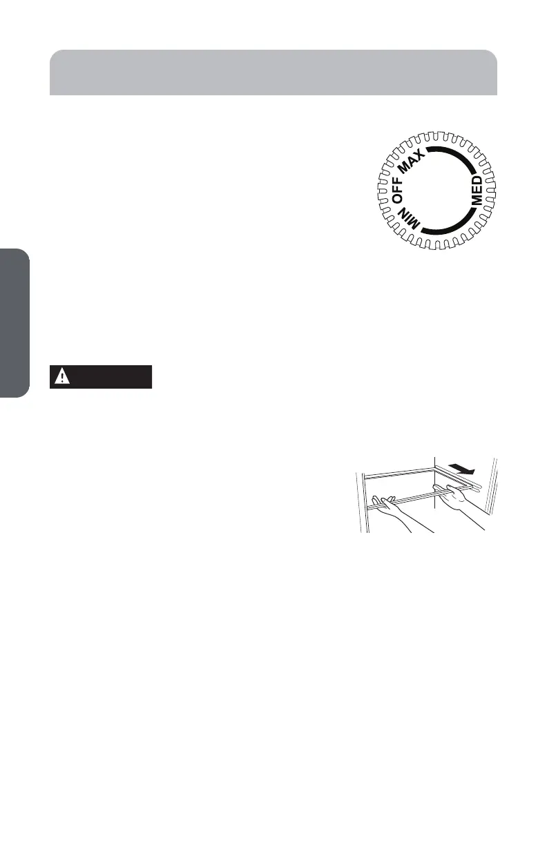 réglage OFF (arrêt). Le réglage MIN est le moins froid et le