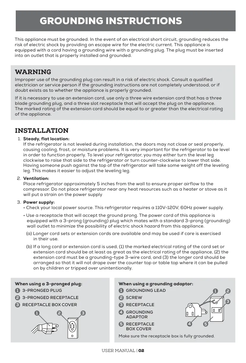 • Check your local power source. This refrigerator requires a 110V-120V, 60Hz power supply.