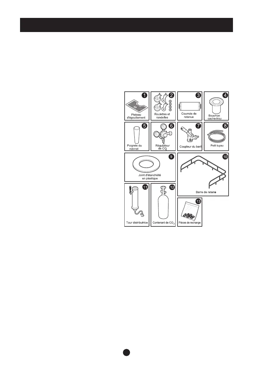 bière, vous pourriez avoir besoin d'un autre type de coupleur de baril (7). Vérifiez auprès de
