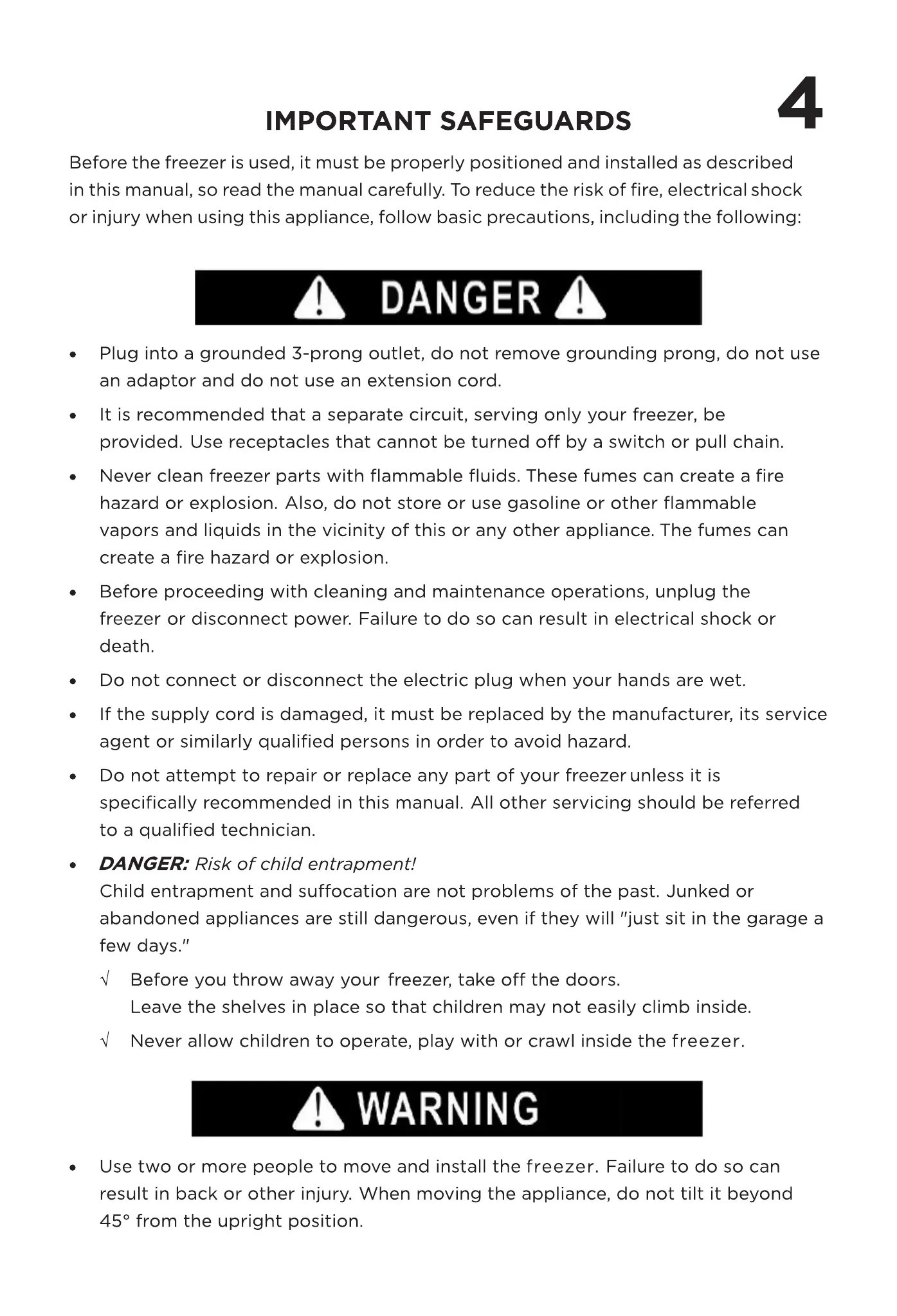 freezer or disconnect power. Failure to do so can result in electrical shock or