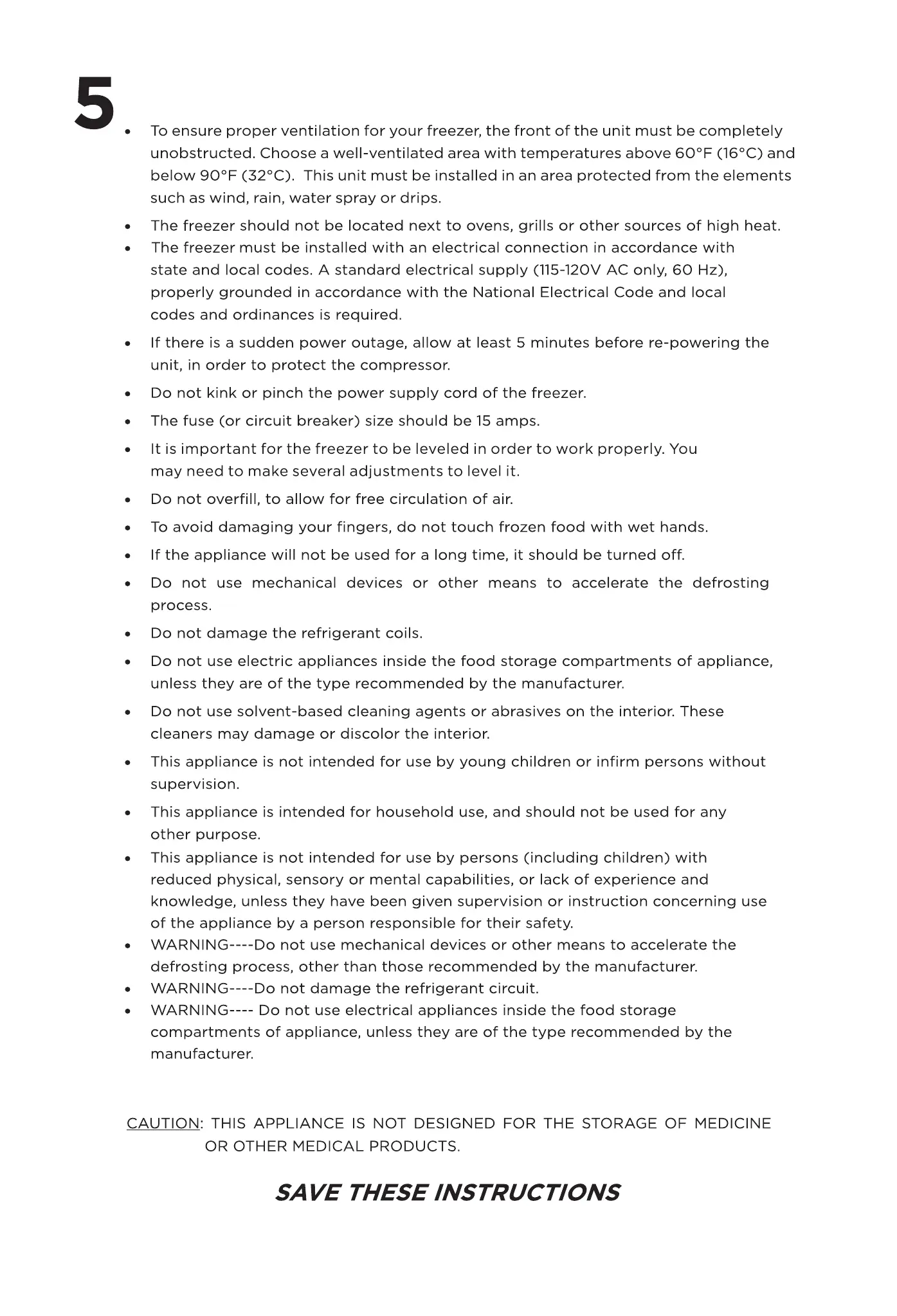 CAUTION: THIS APPLIANCE IS NOT DESIGNED FOR THE STORAGE OF MEDICINE