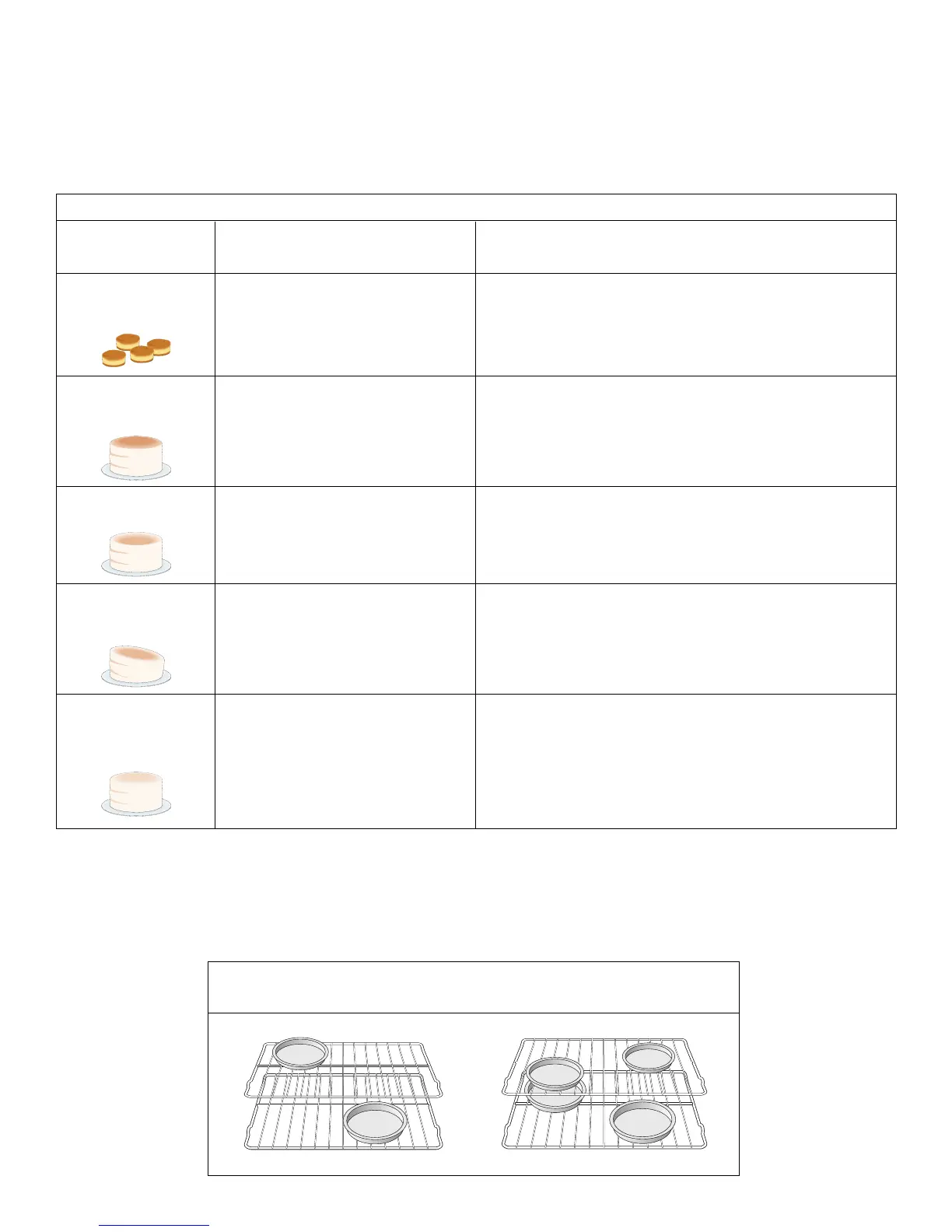 Pour une bonne circulation d’air et une cuisson satisfaisante, centrez les moules le mieux possible. Allouez 5.1 à 10.2 cm (2” à 4”) autour