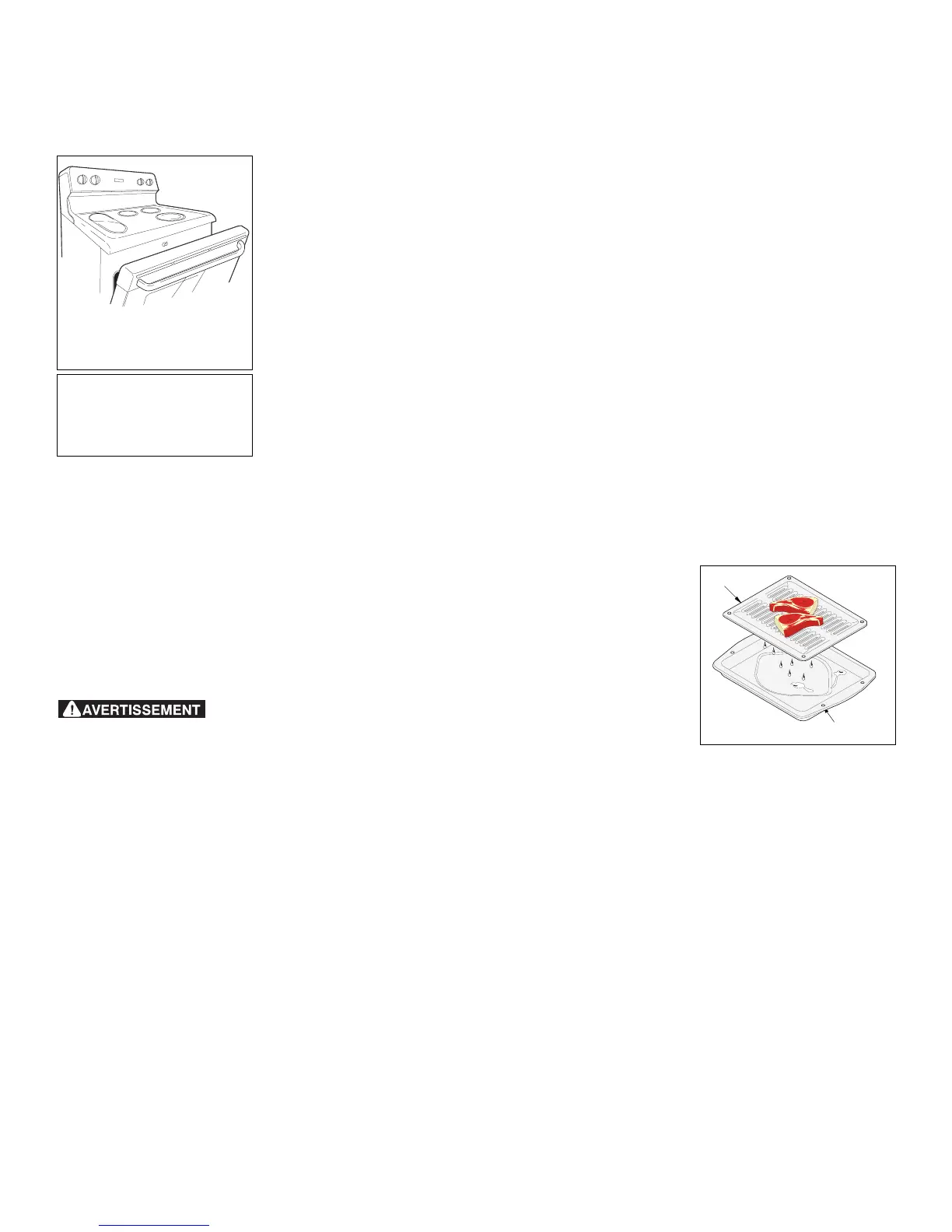 • Nettoyez la lèchefrite dès que possible après utilisation. S’il y a lieu, utilisez des tampons de laine d’acier saponifiés. Un
