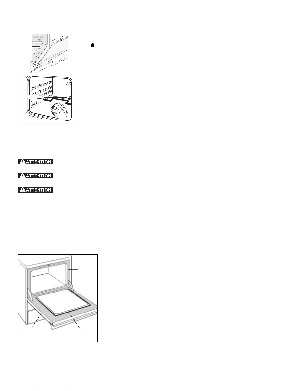 4. Les grilles peuvent être laissées dans le four ou être enlevées. Si elles subissent un cycle d’autonettoyage, leur couleur