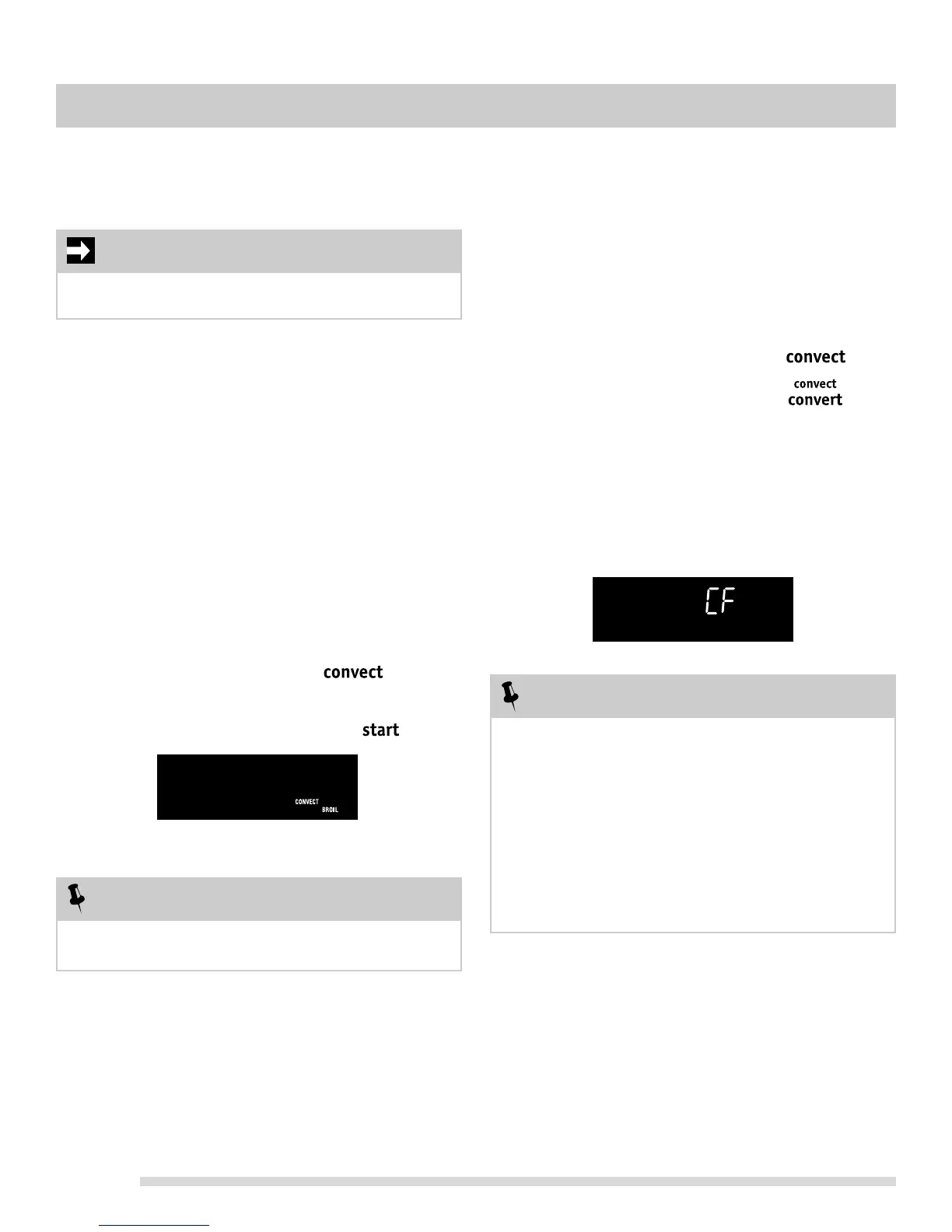 • When using convect convert, any cook time