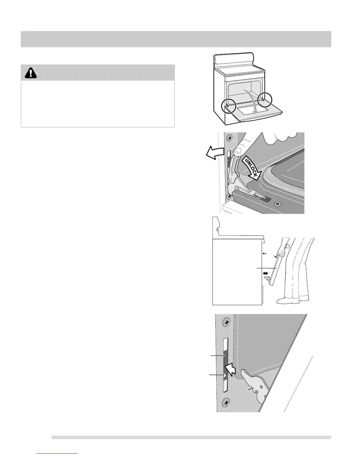 the oven frame. To avoid finish damage, be careful not