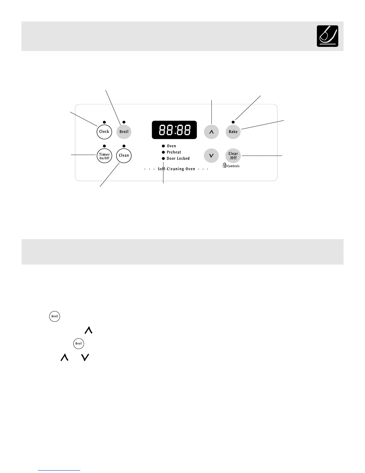 *Note: The OVEN indicator light on the electronic display will turn ON and OFF when using the Bake feature and during