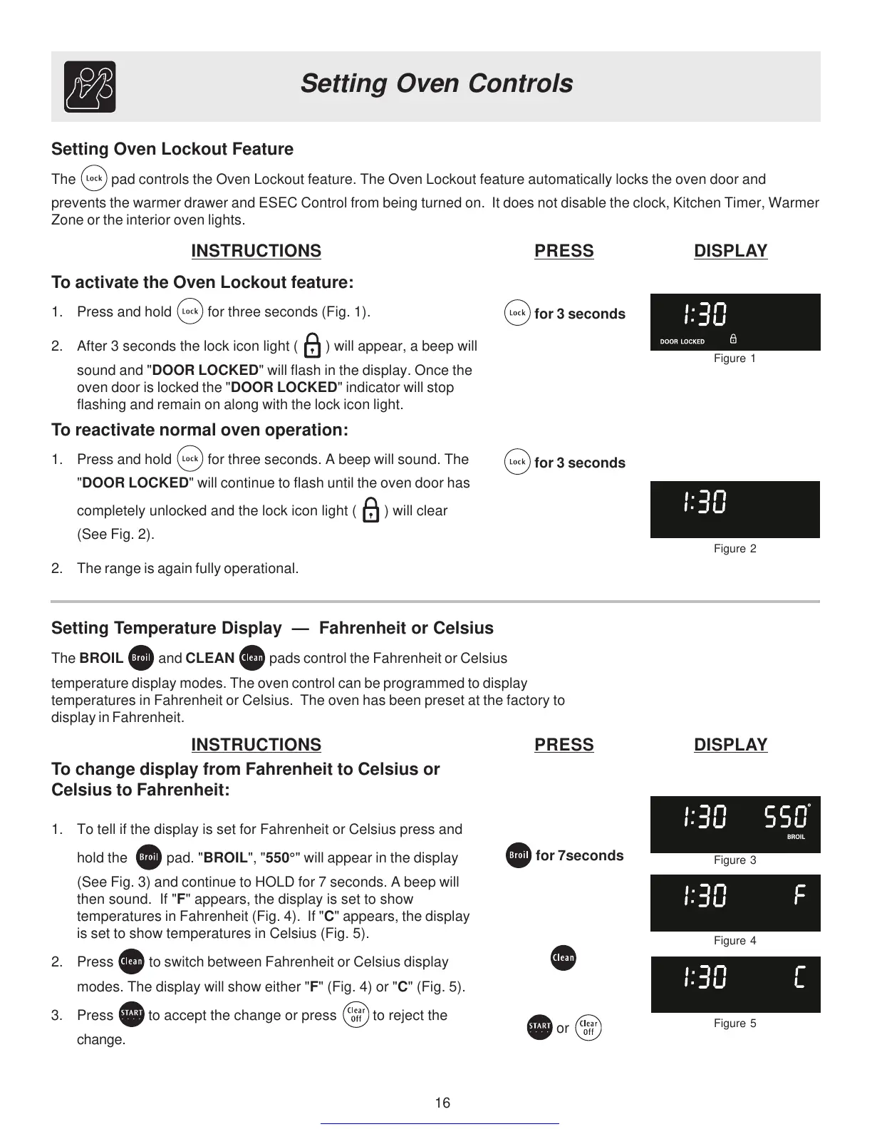 The BROIL and CLEAN pads control the Fahrenheit or Celsius