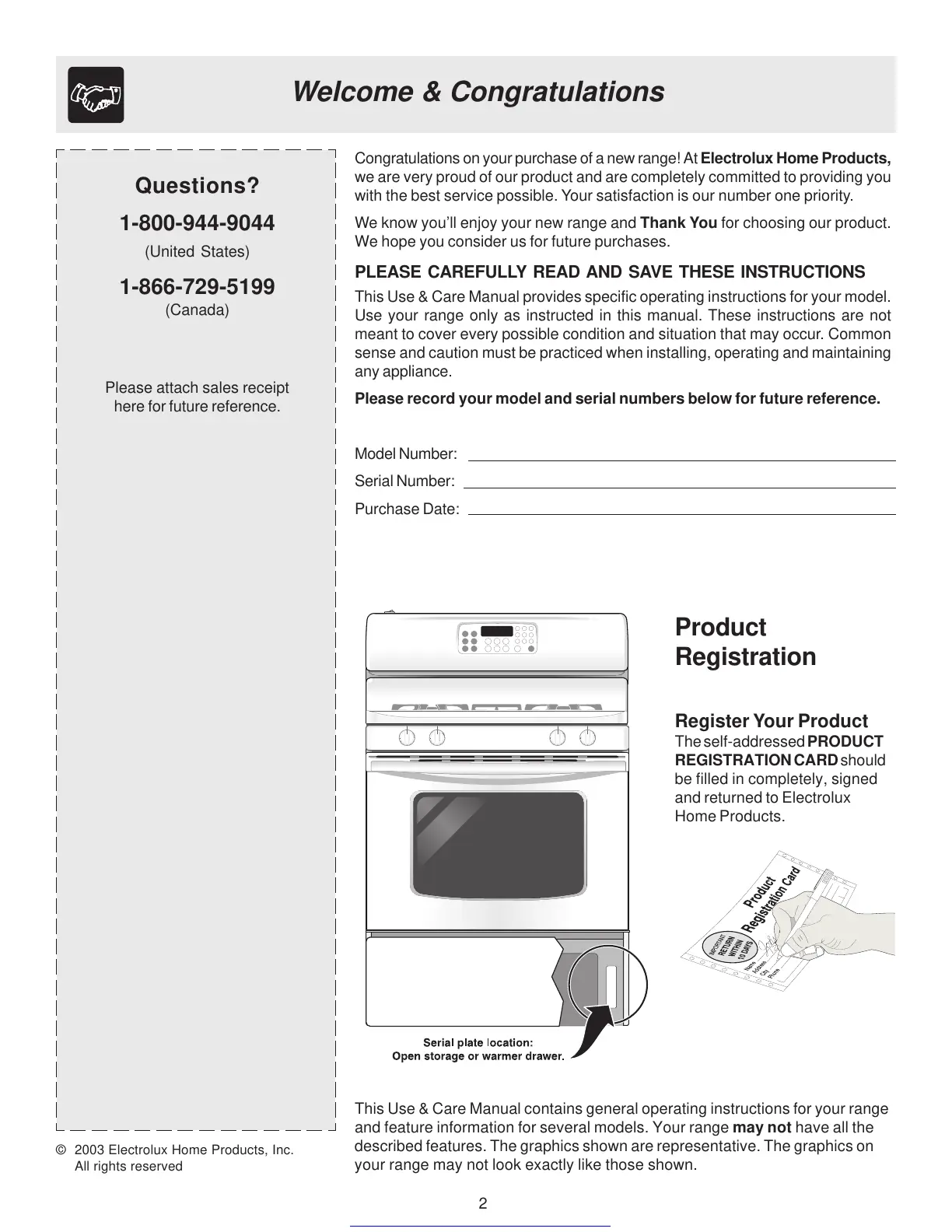 Congratulations on your purchase of a new range! At Electrolux Home Products,