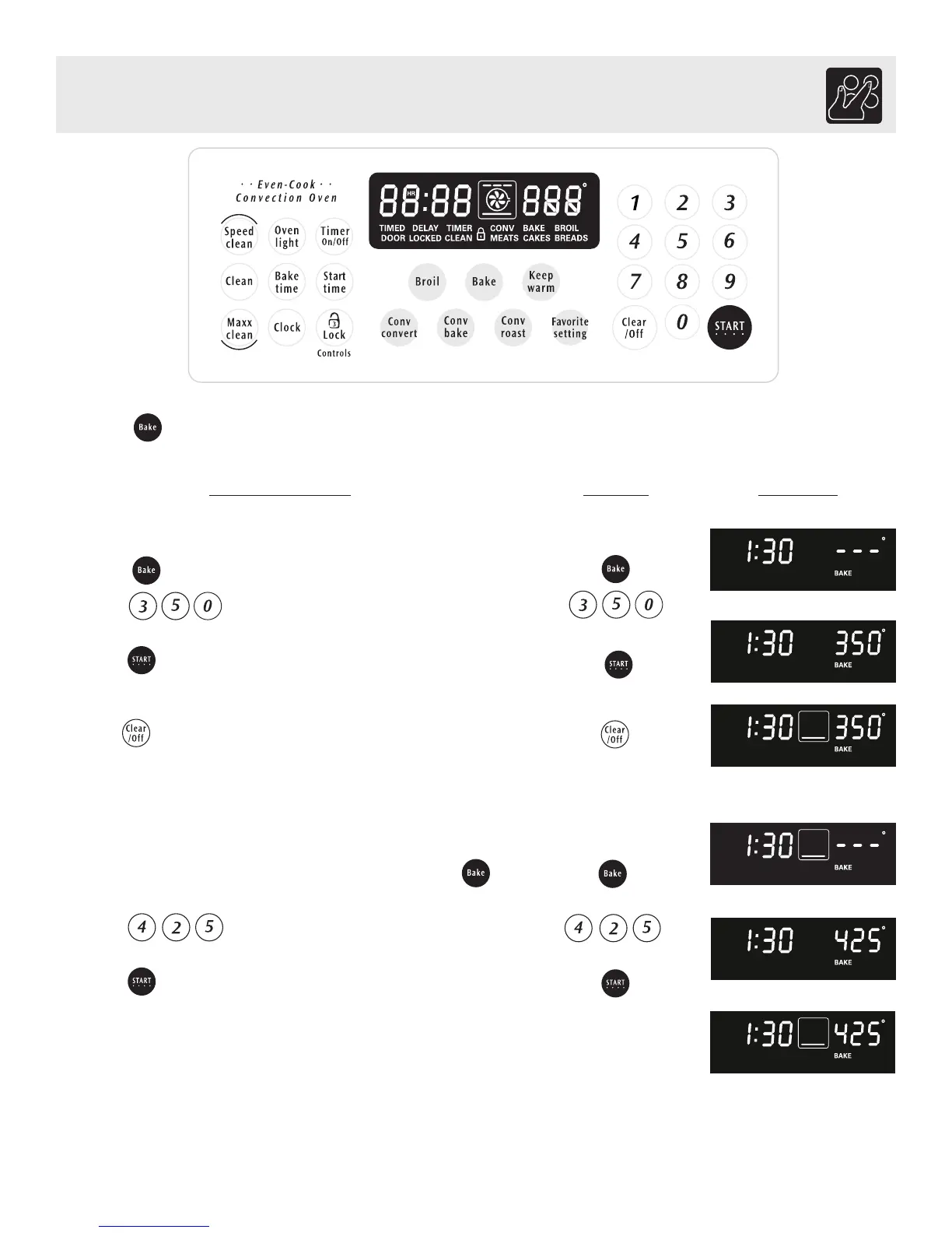 3. Press . "BAKE" and "425°" will appear in the display (See