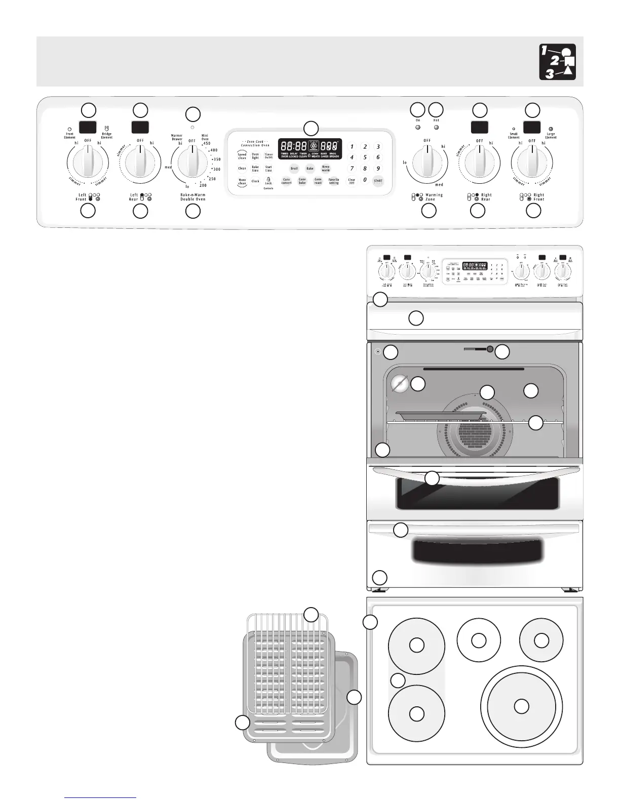 19. Bake-n-Warm™ Double Oven, Drawer Rack, Drawer Handle,