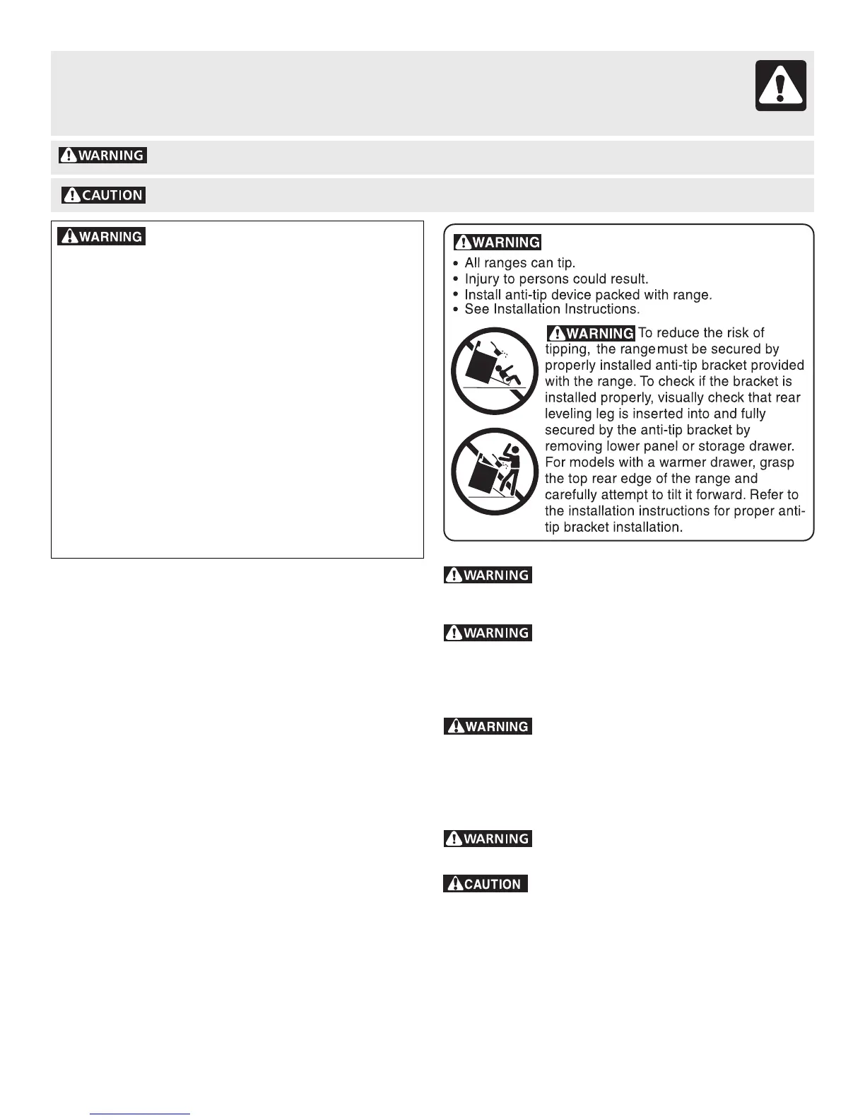 or drawers of this range can result in serious injuries