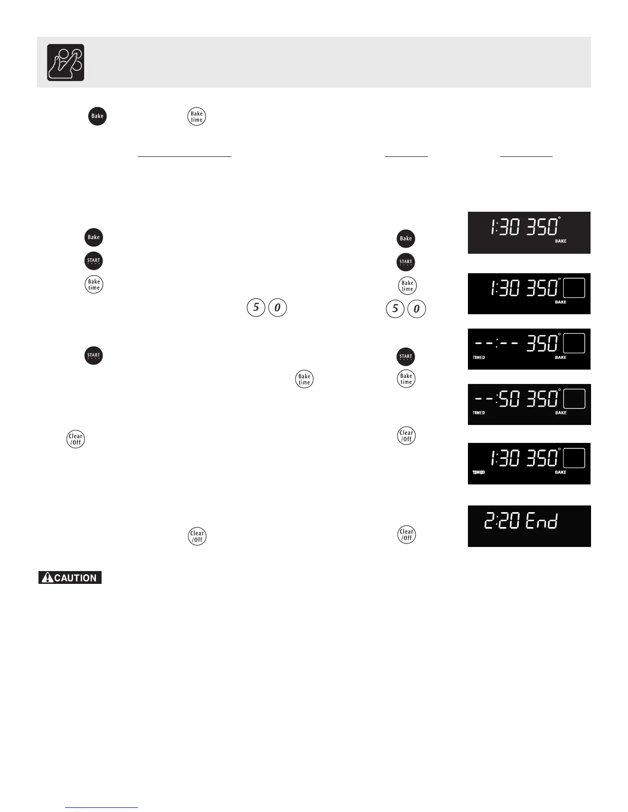 Use caution with the TIMED BAKE or DELAYED TIMED BAKE features. Use the automatic timer when