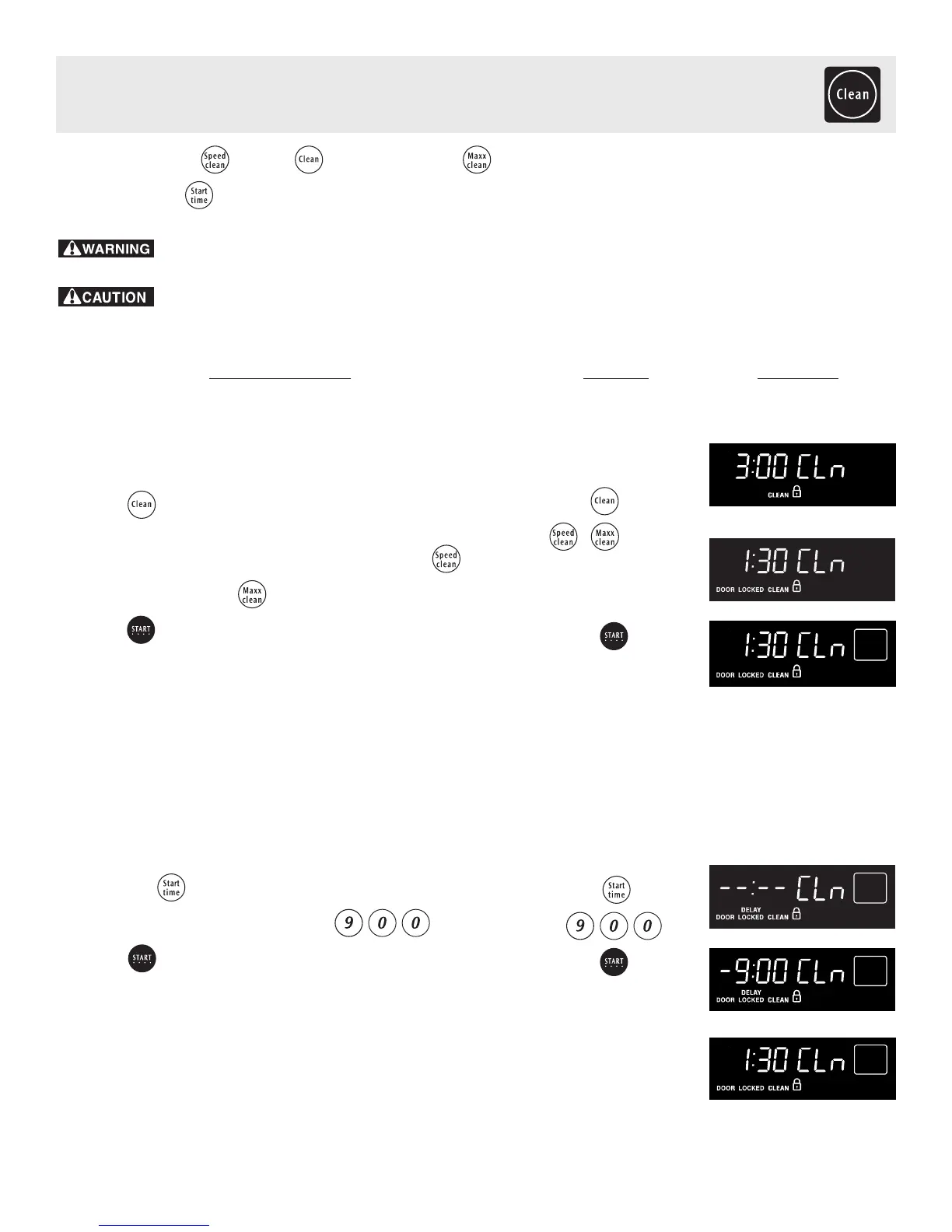 2. Press . "CLEAN" will flash, "3:00" (hours) and the Cooktop