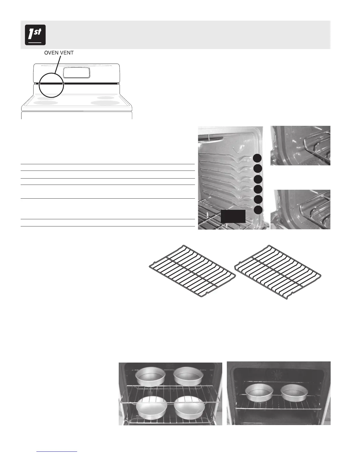 For best results when baking cakes using 2 oven racks, place cookware on rack positions 1& 4 (See Fig. 7). For best