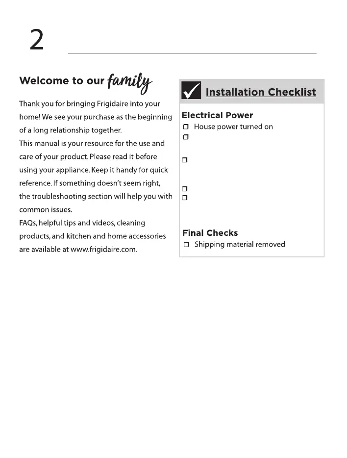 Frigidaire ESTM028 - Introduction; Installation Checklist