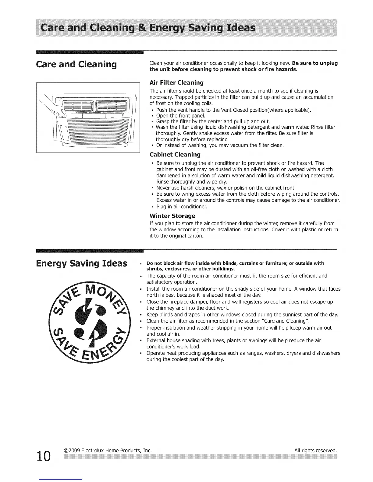 0 @2009 Electrolux Home Products, Inc. All rights reserved.