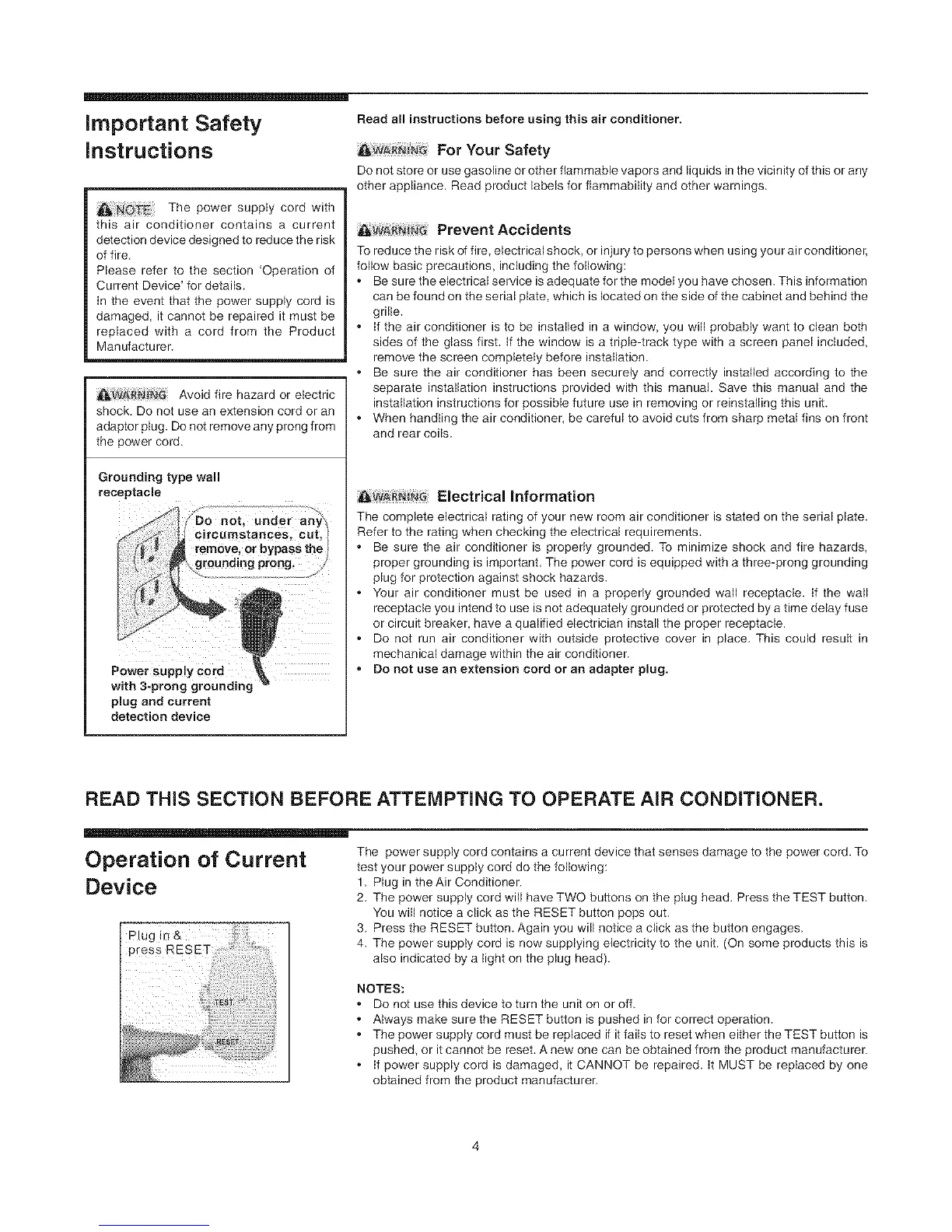 READ THIS SECTION BEFORE ATTEMPTING TO OPERATE AIR CONDITIONER.