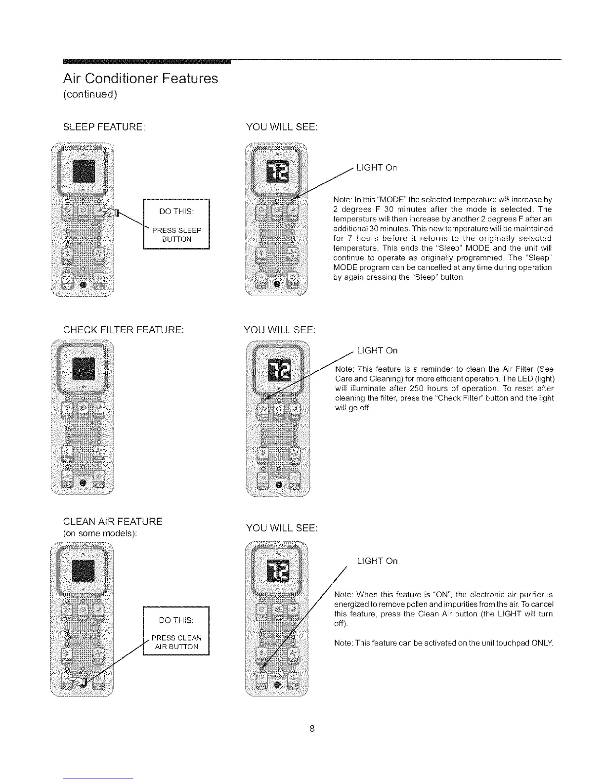 this feature, press the Clean Air button (the LIGHT will turn
