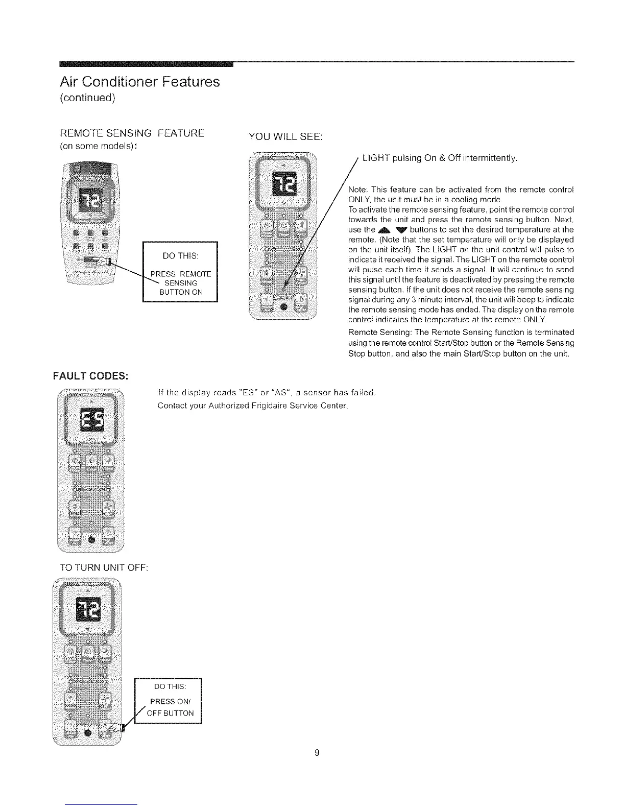 sensing button. If the unit does not receive the remote sensing