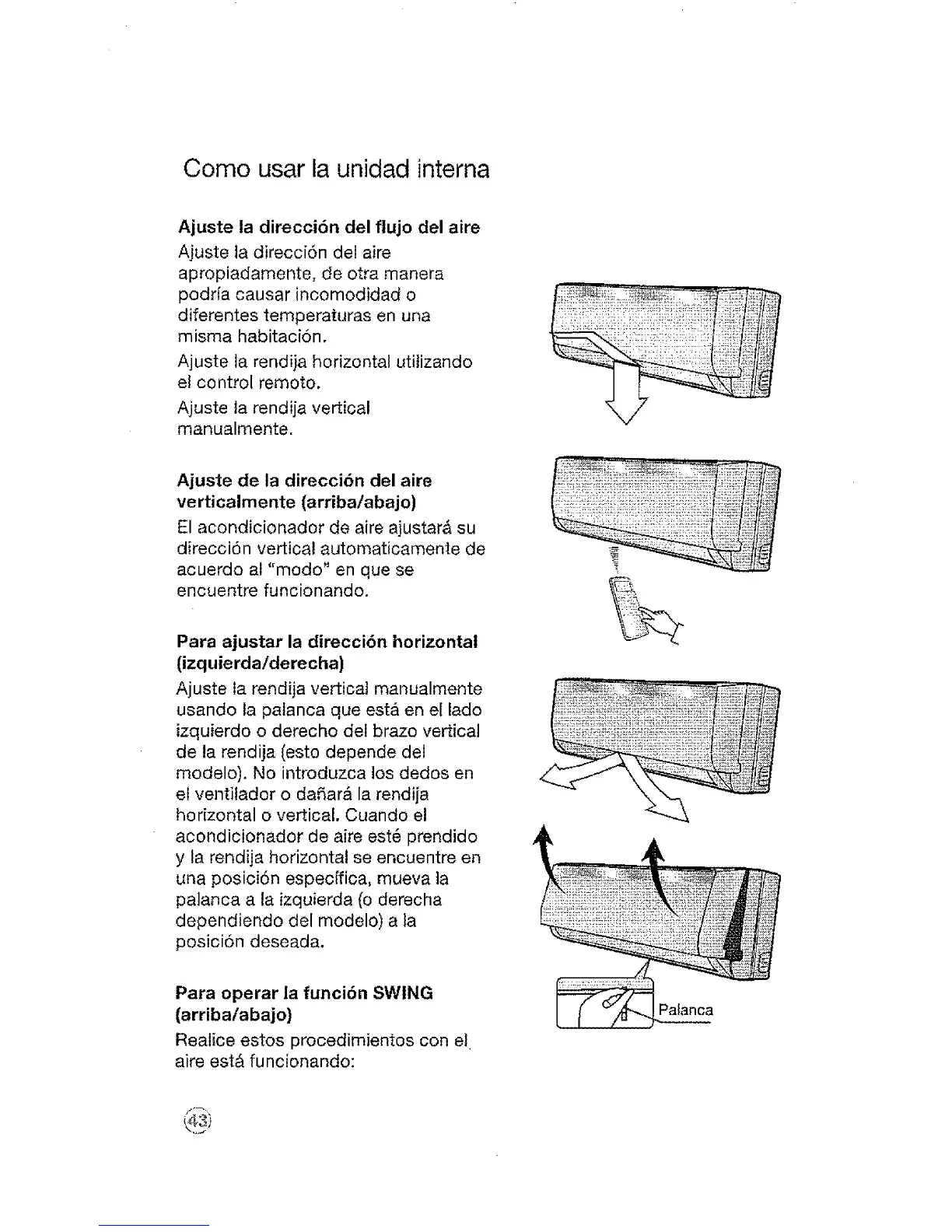 Ajuste la direcci6n del aire