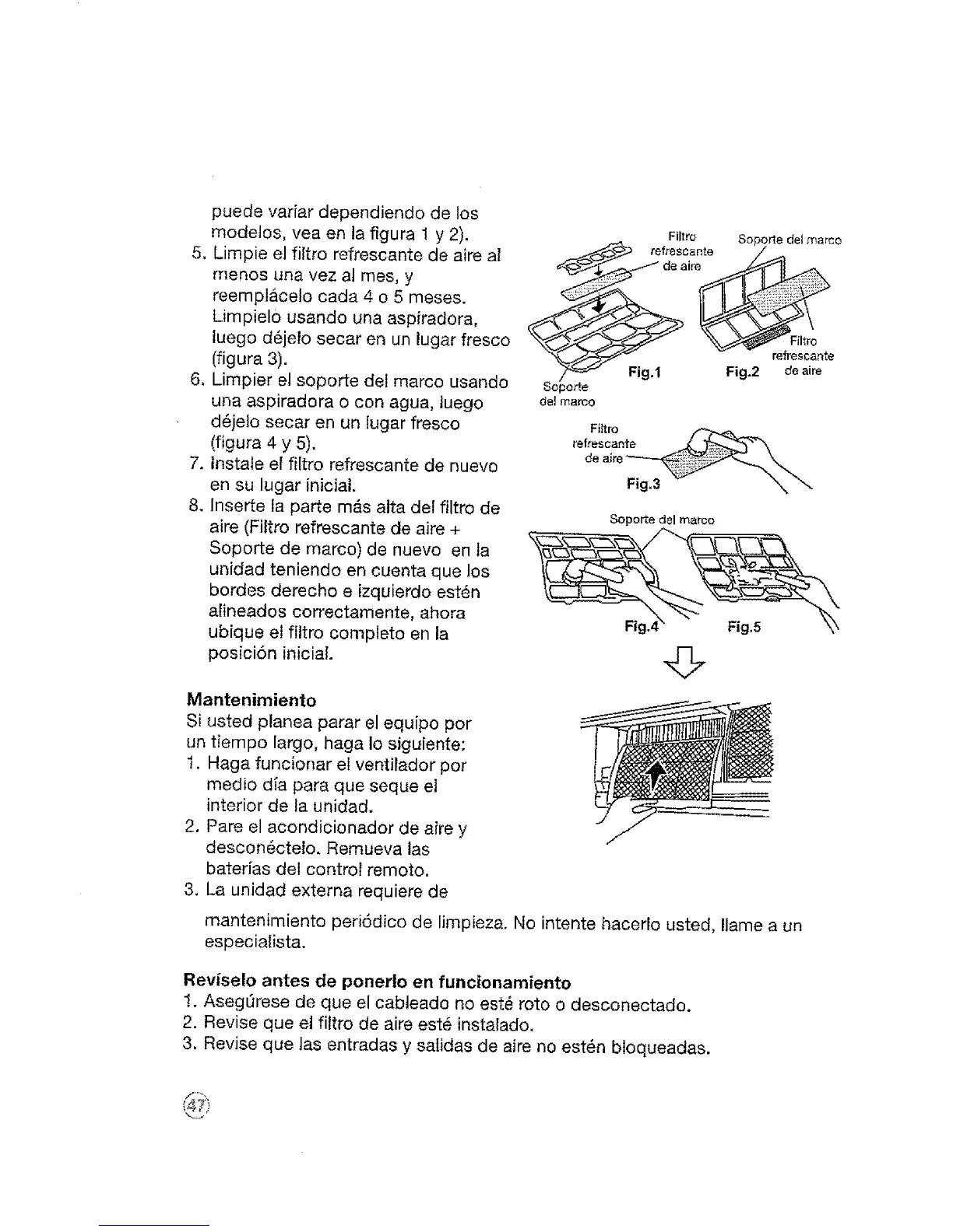 5. Limpie el filtro refrescante de aire al