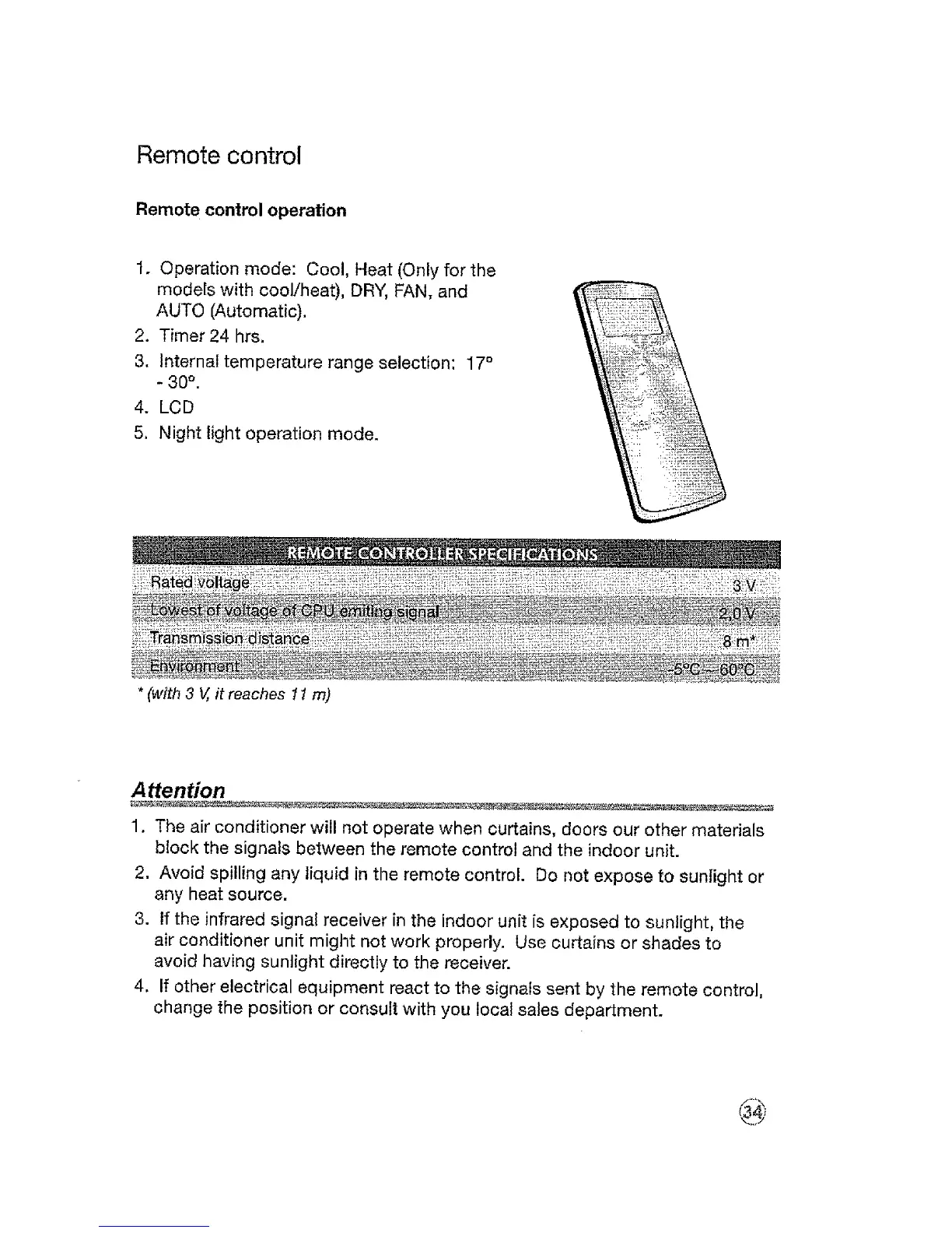 2. Avoid spilling any liquid in the remote control. Do not expose to sunlight or