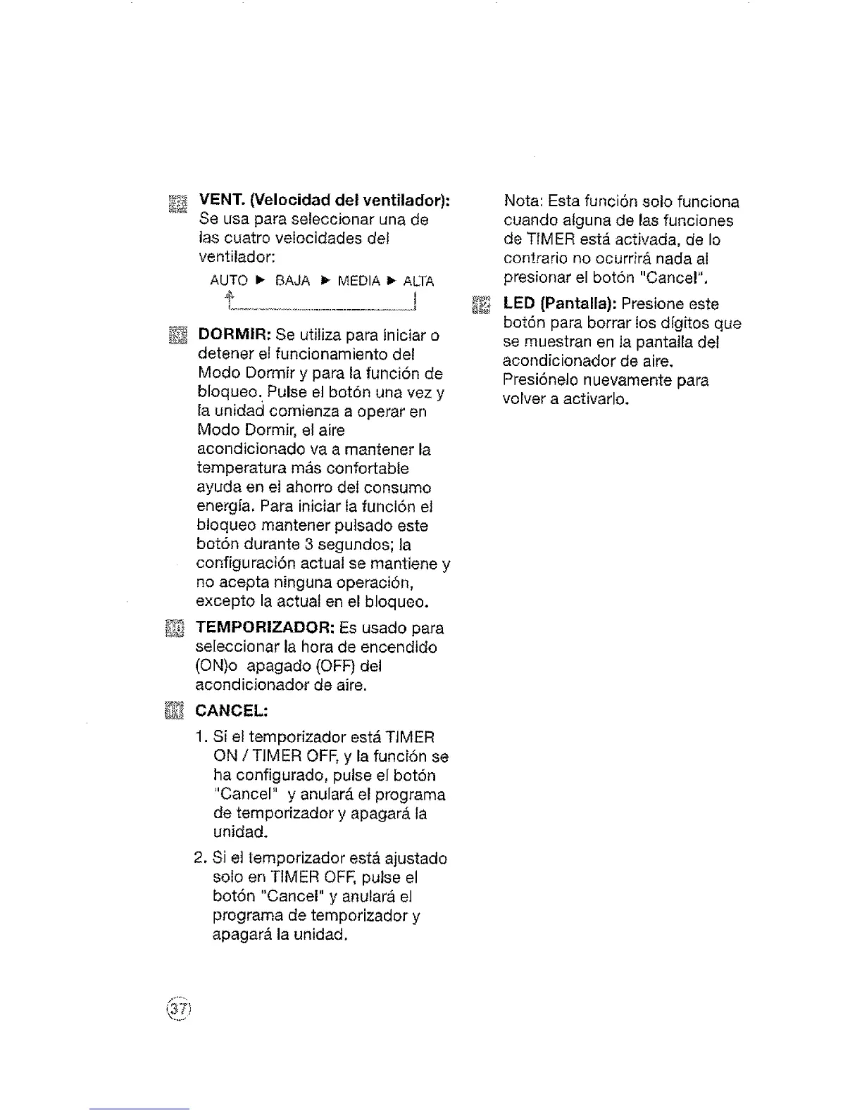 ON/TIMER OFF, y la funcion se