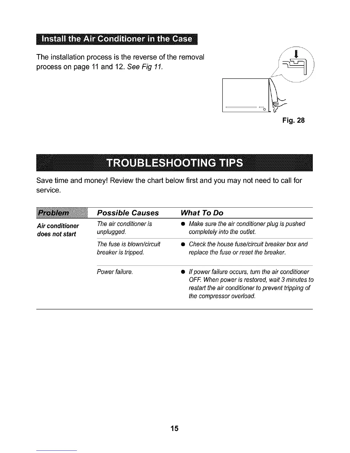 Air conditioner The air conditioner is • Make sure the air conditioner plug is pushed
