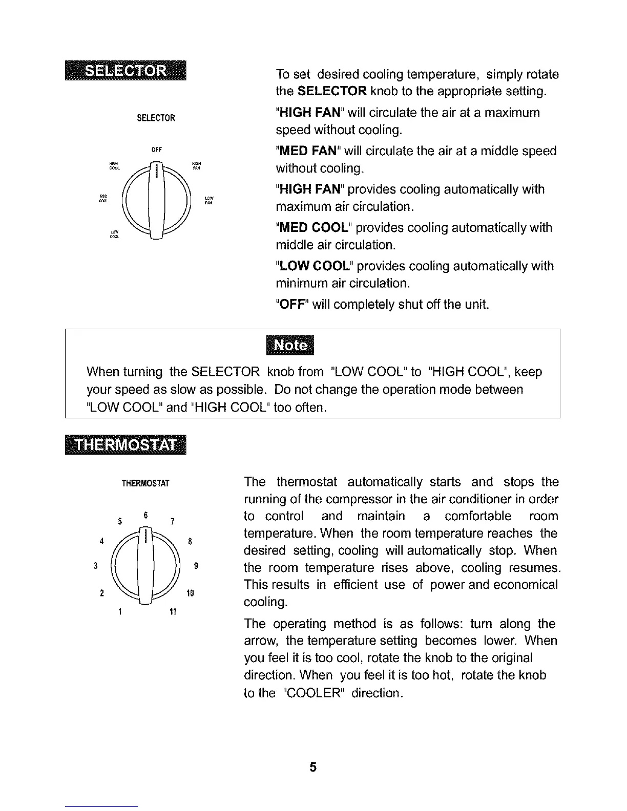 When turning the SELECTOR knob from "LOW COOL" to "HIGH COOL", keep