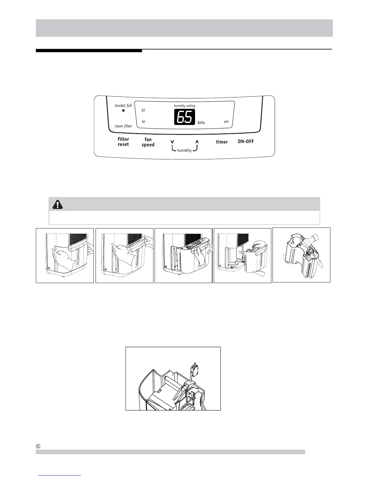 Si la luz indicadora del recipiente lleno no se extingue, chequee que el flotante esté correctamente