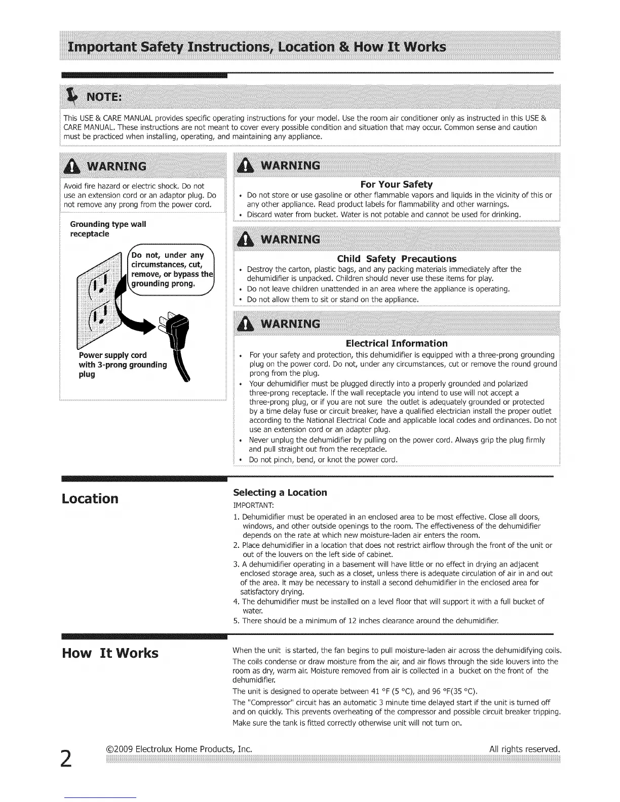 ©2009 Electrolux Home Products, Inc. All rights reserved.