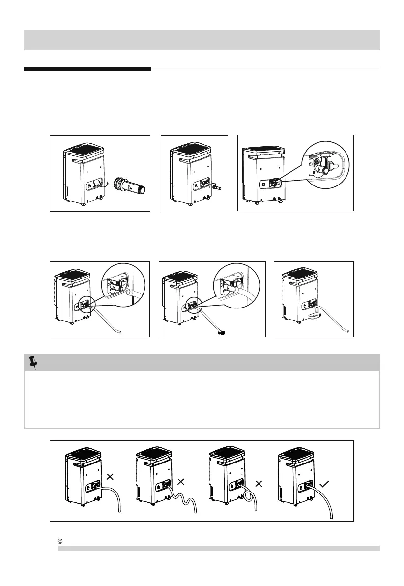 3. When applying continuous drainage option, place dehumidifier on a horizontal surface and make sure garden