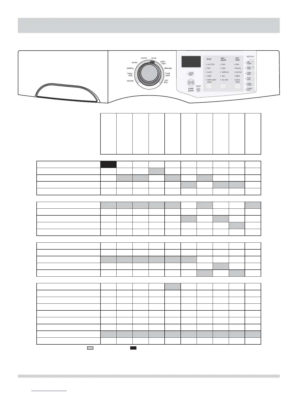 Frigidaire FAFS4073NA - Washer Settings Chart