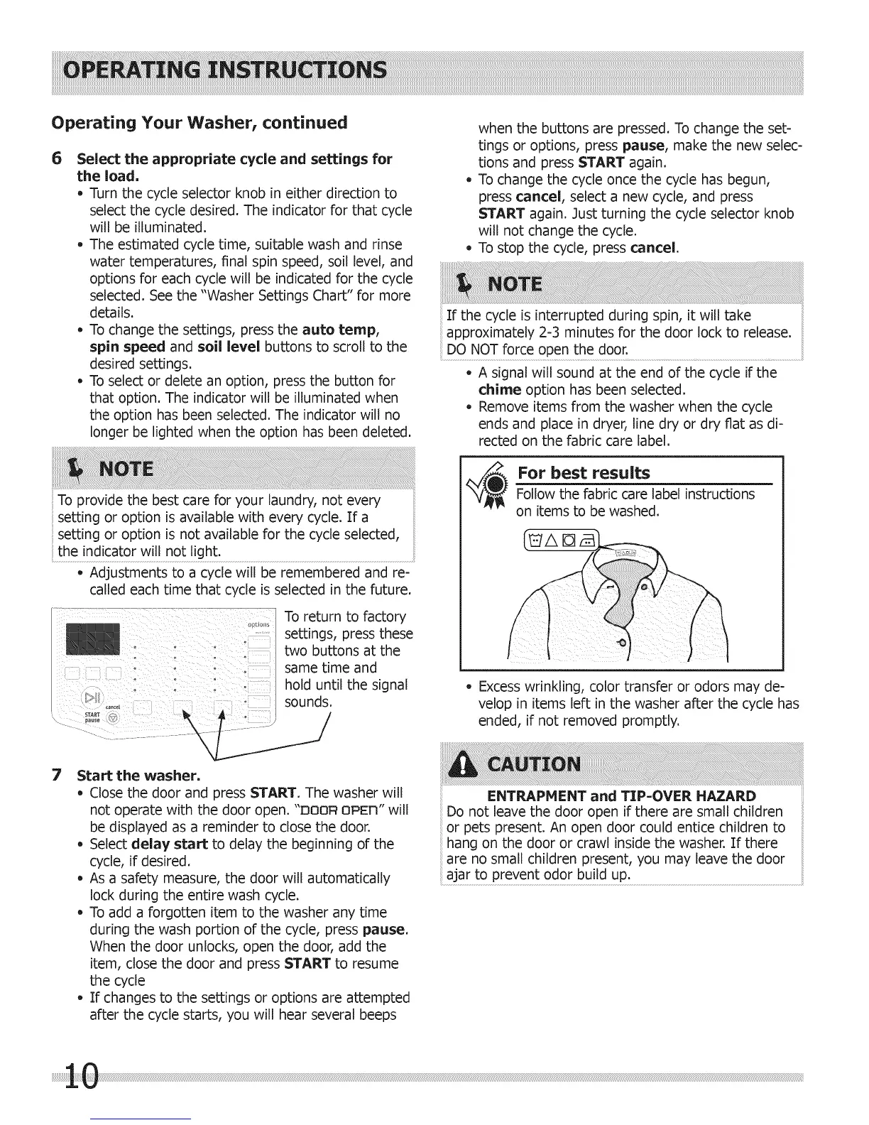 Operating Your Washer, continued