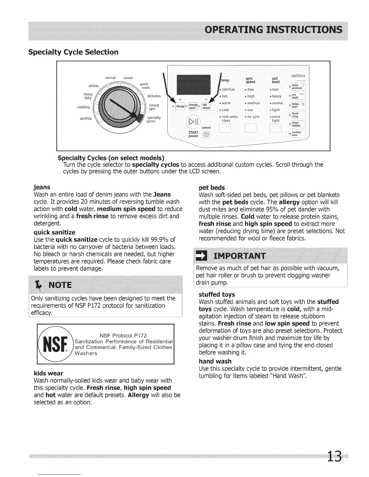 Turn the cycle selector to specialty cycles to access additional custom cycles. Scroll through the
