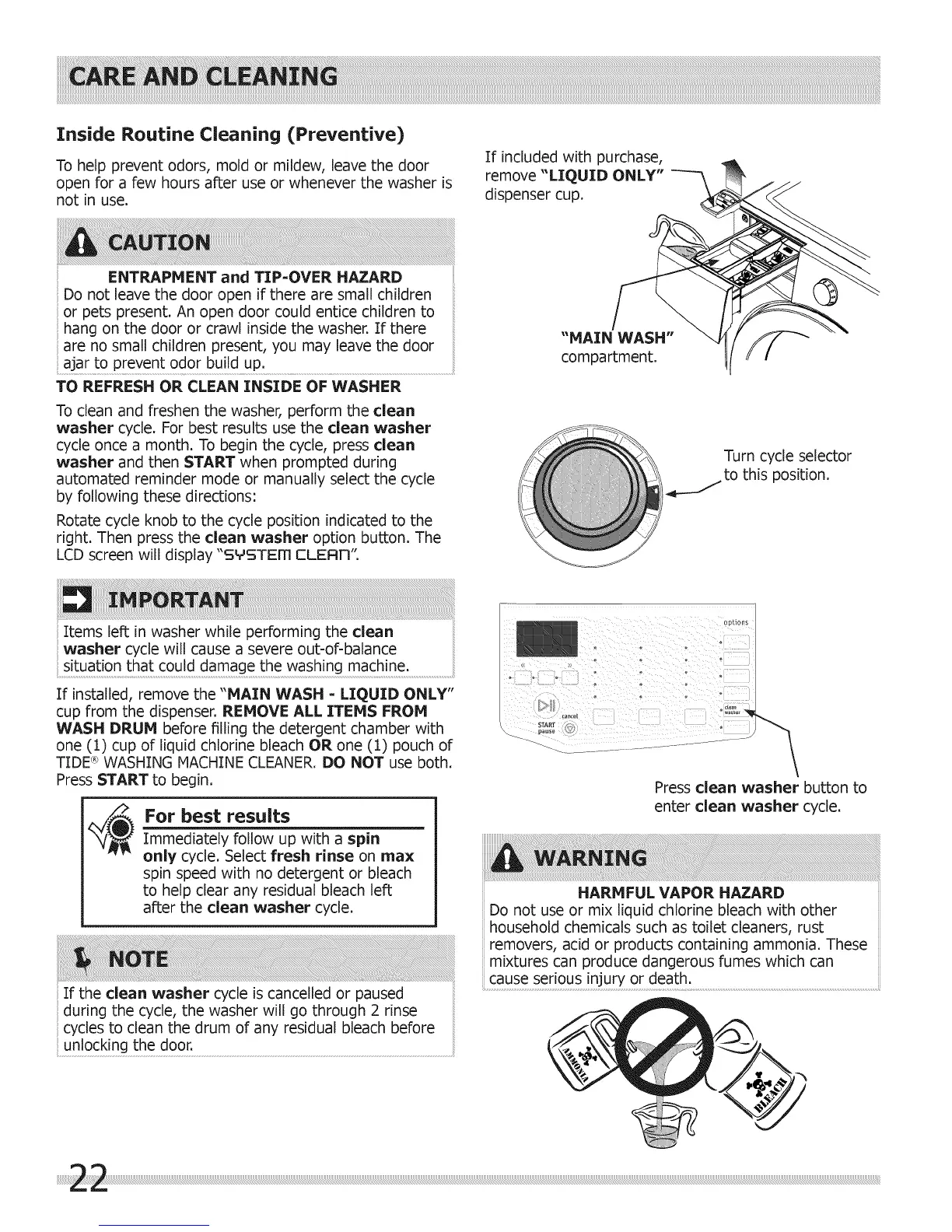 TO REFRESH OR CLEAN INSIDE OF WASHER