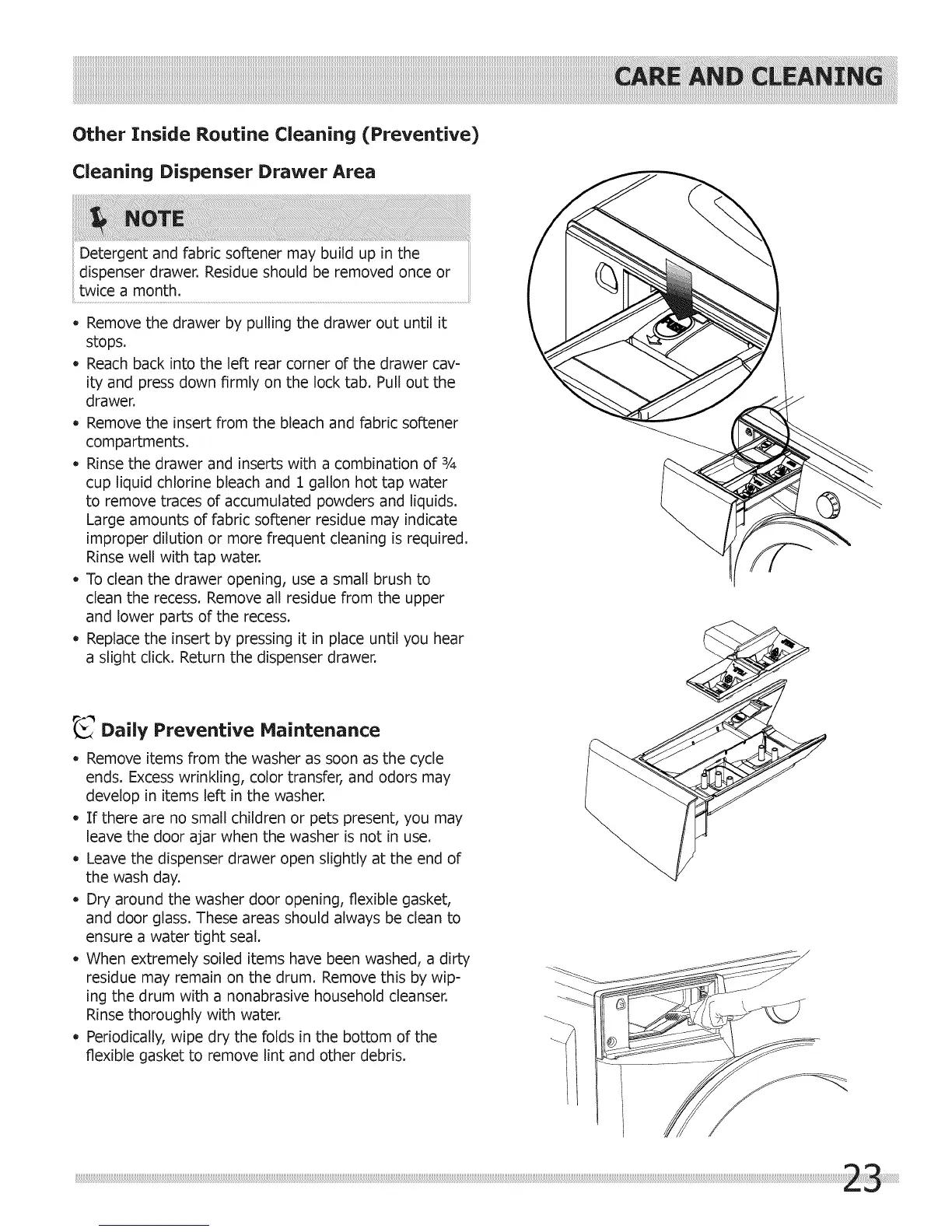 - Dry around the washer door opening, flexible gasket,