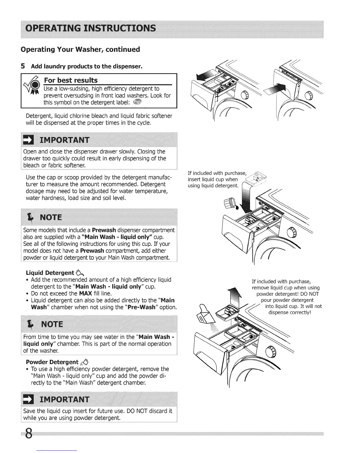 For best resultsUse a low-sudsing, high efficiency detergent to