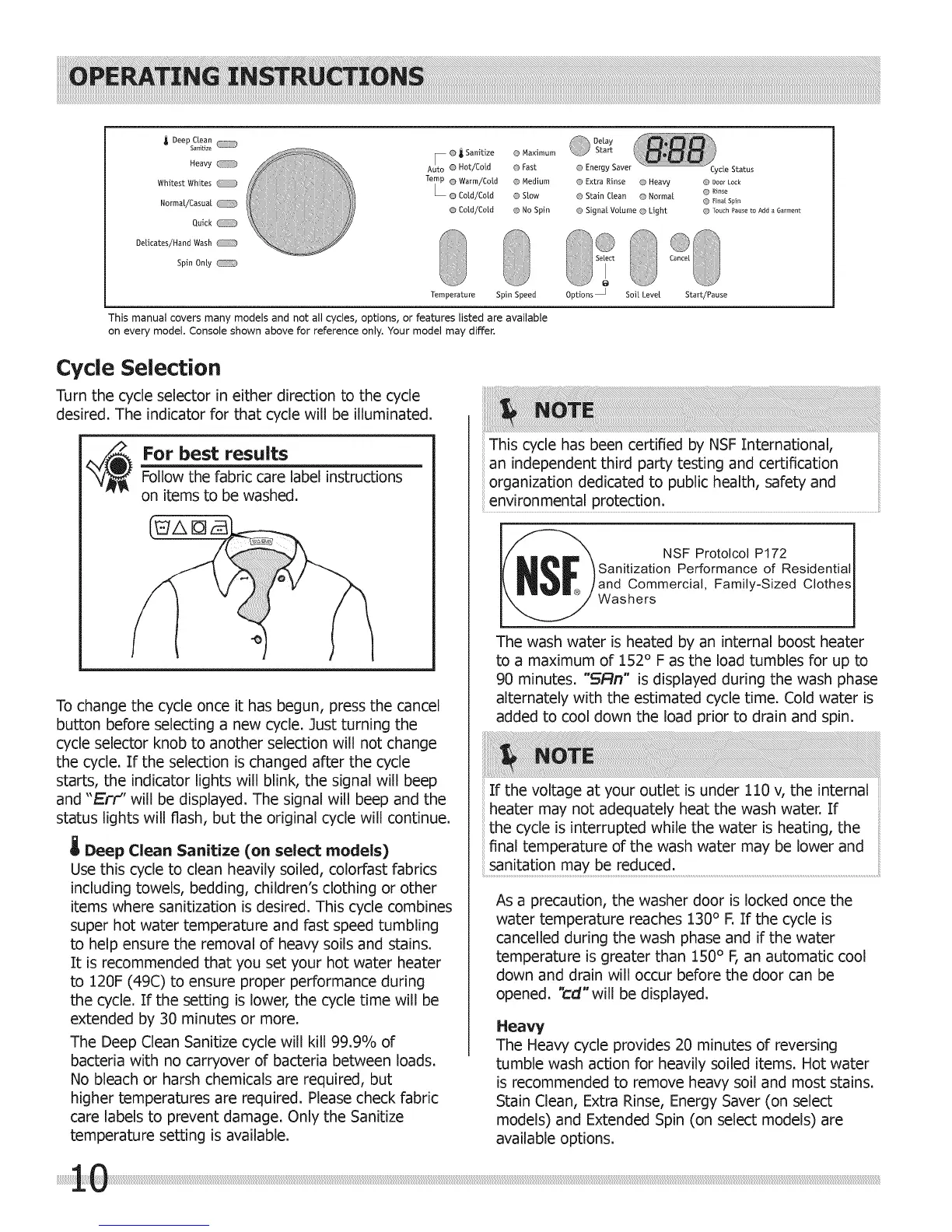 Stain Clean, Extra Rinse, Energy Saver (on select
