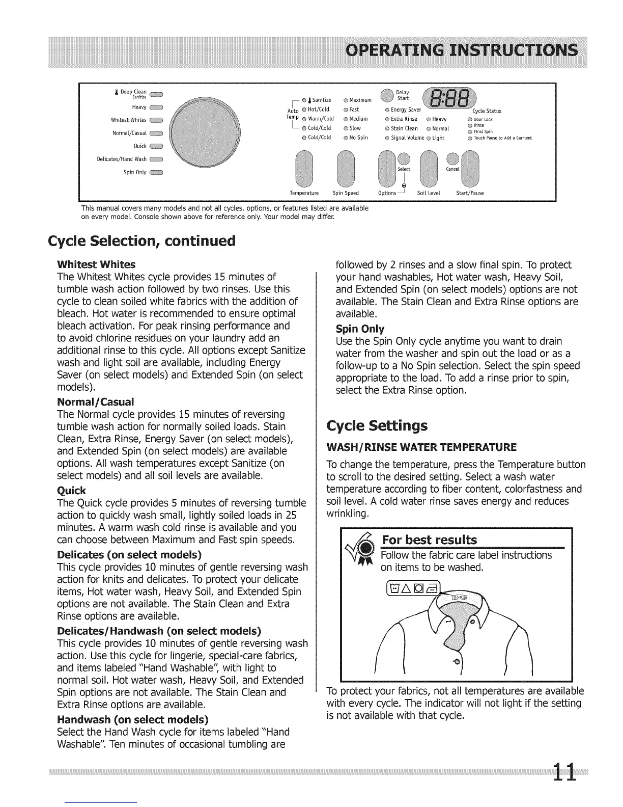 items, Hot water wash, Heavy Soil, and Extended Spin
