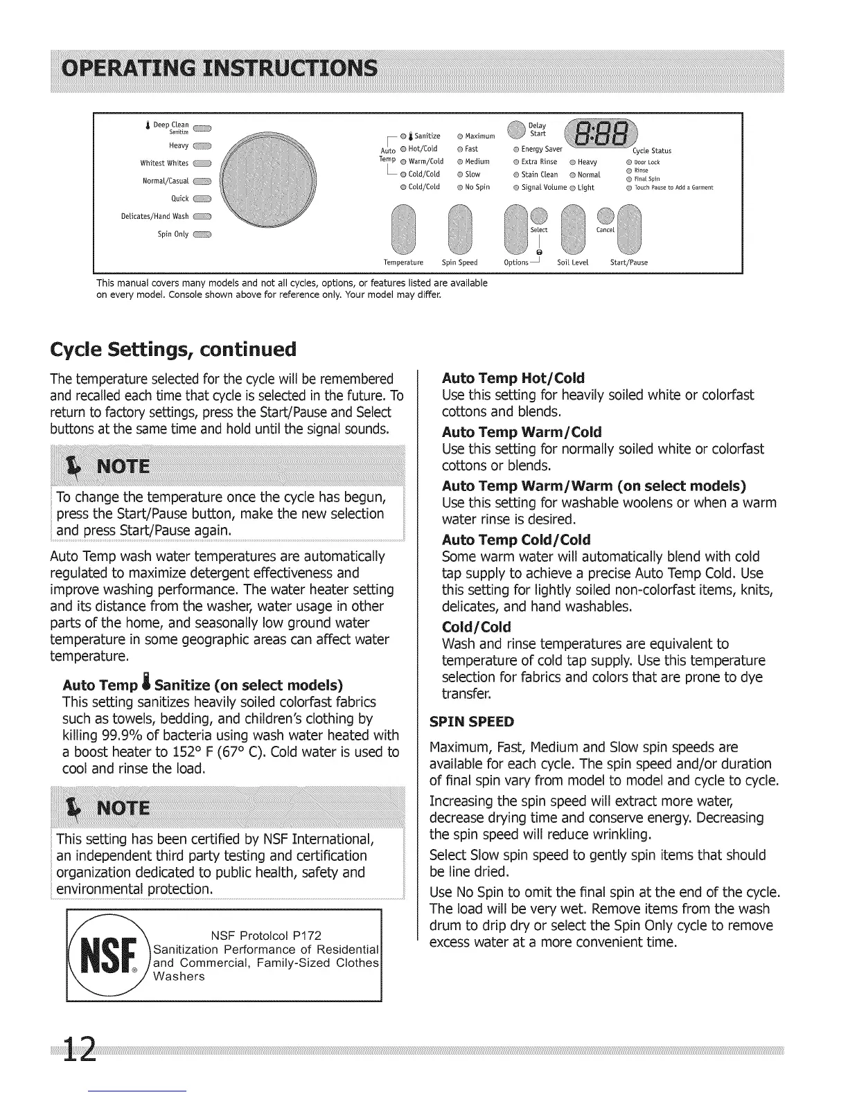 This manual covers many models and not all cycles, options, or features listed are available